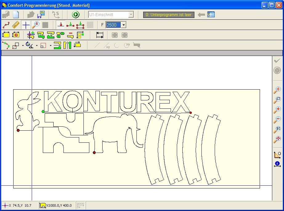 Various program modules such as DXF import, part editor, program editor, list editor, etc. are available for creating parts and programs.