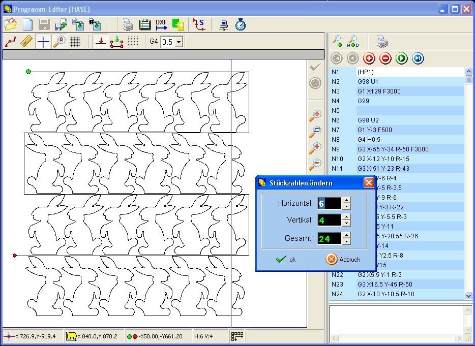 Once the basic program has been created, the number of parts can simply be adjusted accordingly using horizontal and vertical piece counters