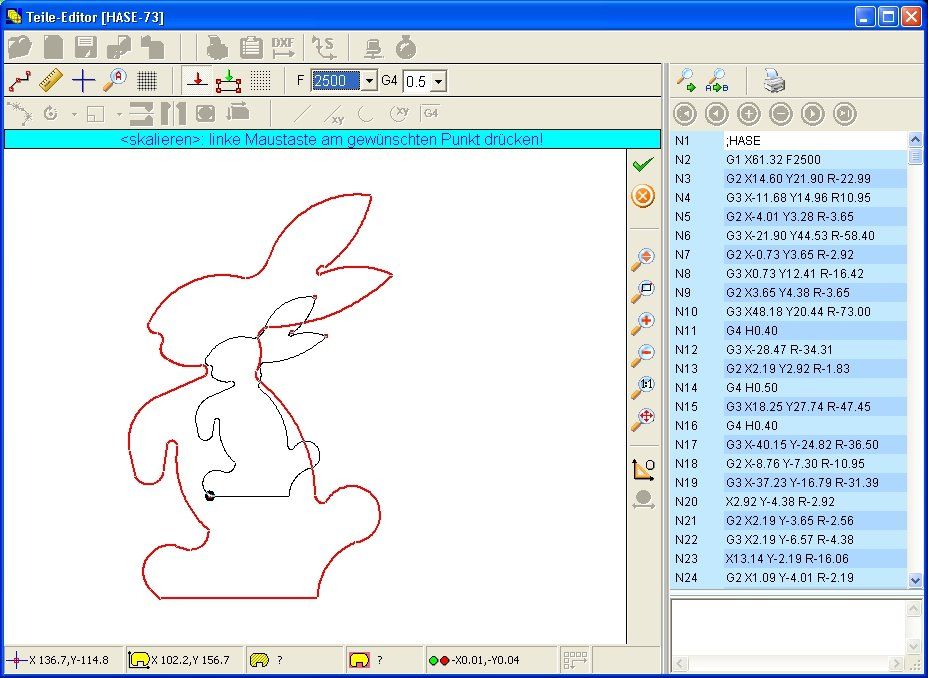 With the help of the program editor or the flash programming, the contour created with the parts editor can be reproduced.